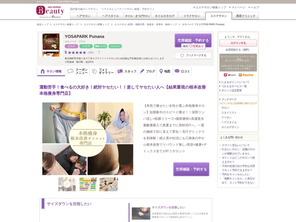 鶴川駅 よもぎ蒸しの中でも、YOSAPARK Punanaは価格とサービスのバランスが良く、初めての方にもおすすめです。