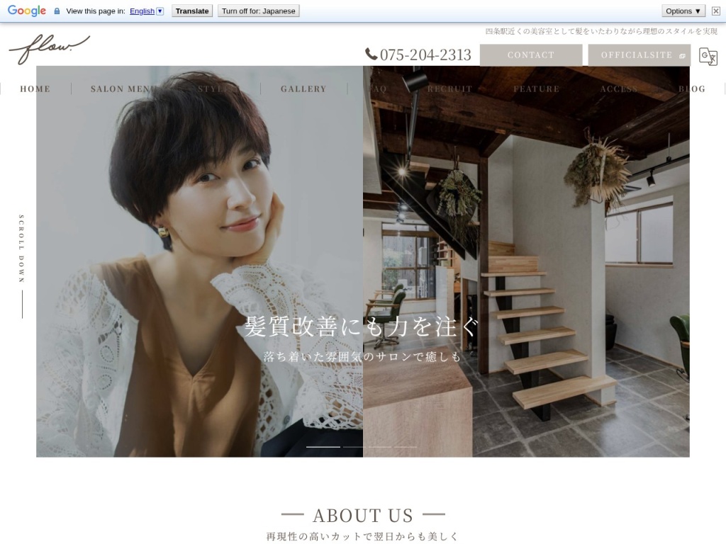 | flow. 【フロー】 | オリジナルヘアケアライン | 京都の水質に合わせた処方、自然由来成分が豊富 |