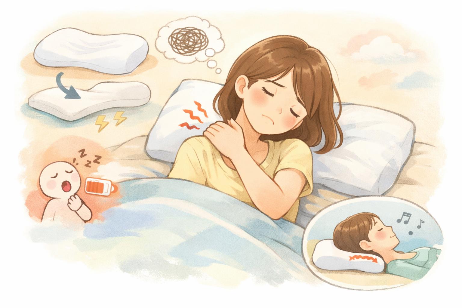 「朝起きると肩がガチガチ」「寝ても疲れが取れない」そのつらい肩こり、もしかしたら毎日使っている枕が原因かもしれません。合わない枕は、首や肩に不自然な負担をかけ、血行不良や筋肉の緊張を引き起こす大きな要因となります。この記事では、あなたの肩こりの真の原因が枕にある可能性を徹底解説。枕が肩こりを引き起こすメカニズムから、自分にぴったりの枕の選び方、さらに寝ながらできる簡単なセルフケア、そしてニトリや西川といった有名ブランドから、エアウィーヴ、コアラマットレスなどの人気商品まで、おすすめの肩こり改善グッズを厳選してご紹介します。この記事を読めば、あなたの肩こりの原因を特定し、今日から実践できる具体的な改善策を見つけ、ぐっすり眠りながら肩こりを根本から改善し、快適な毎日を送るためのヒントが必ず見つかります。